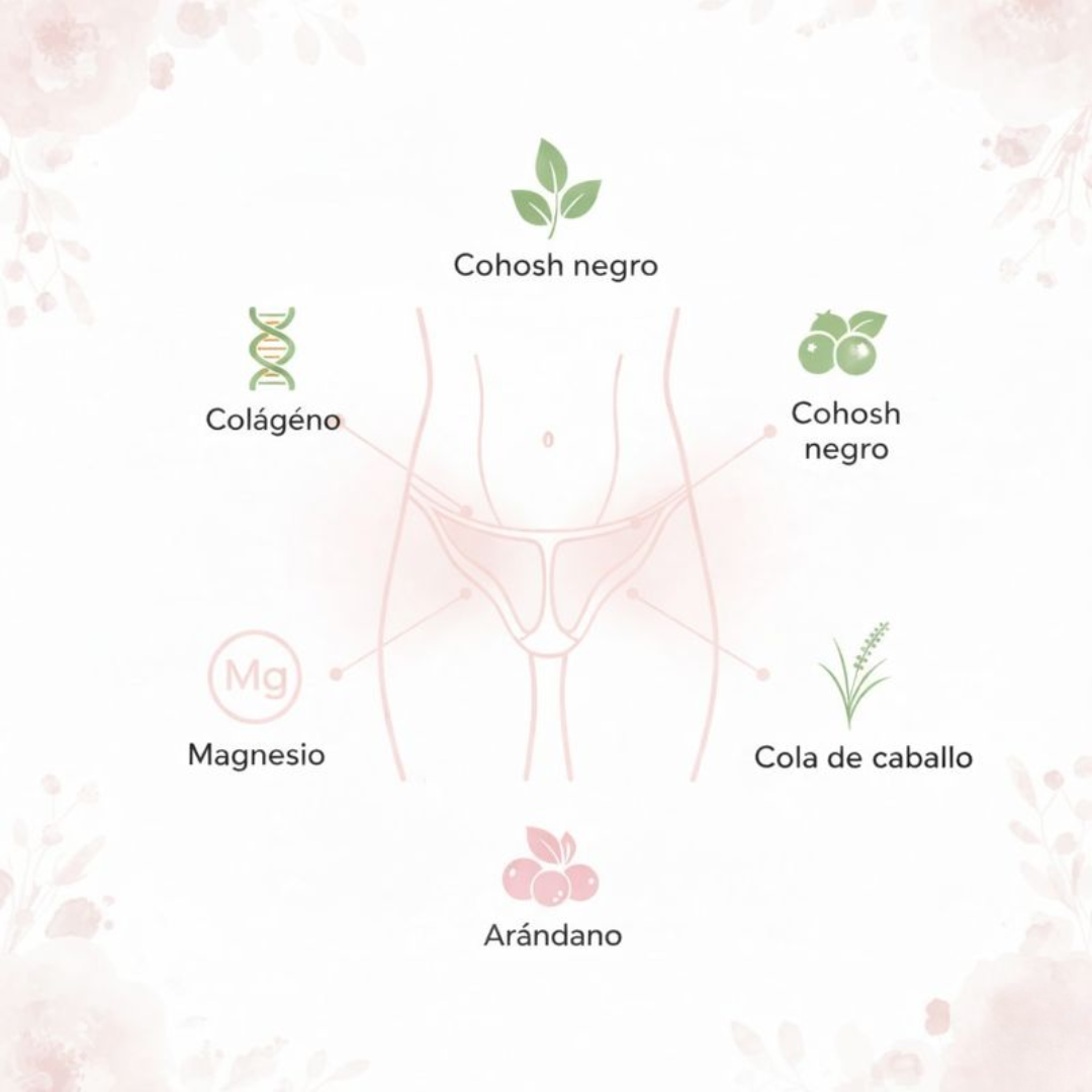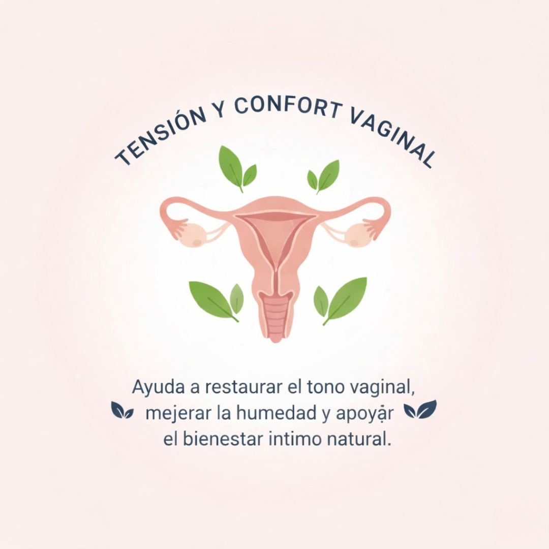 Firmeza y confort vaginal Apoya la hidratación vaginal, la fortaleza del tejido y el bienestar íntimo natural